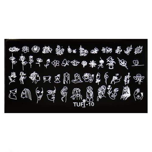 TUFI profi PREMIUM nagu dizaina šablons 10 ir profesionāls rīks radošiem un unikāliem nagu dizainiem. Ideāls stempinga tehnikas lietošanai, ļauj izveidot sarežģītus rakstus un dizainus viegli un ātri.