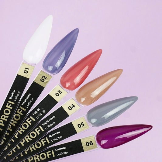 Košu krāsu eksplozija un pasteļtoņu cēlums, maigu un piesātinātu nokrāsu kombinācija — tā ir īsta maģija un nepārtrauktas pozitīvas emocijas! Lollipop gēllaku kolekciju veido maigi toņi, kas atgādina krāsainas ledenes.